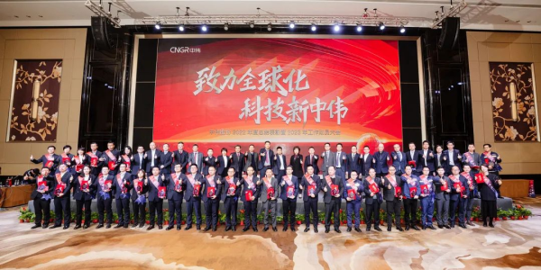 2022年,邓伟明董事长在全球疫情严峻复杂的情况下,为推进公司国际化,亲率高管团队到国外出差,基于对国际形势发展的了解、对世界格局变化的思考,在本次大会上发表了以《葆初心再创业》为主题的年度演讲。