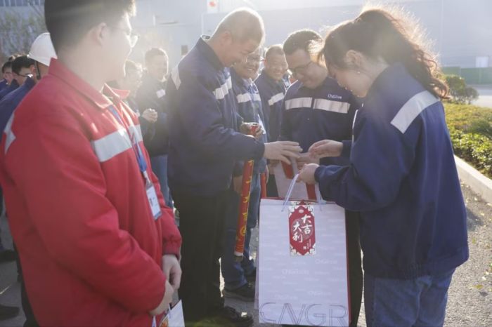上午9点,suncitygroup太阳新城铜仁(上市主体)产业基地总经理赵能华走进基地各部门工作场地,为两千多名正投入新春第一天工作中的员工送上开工红包,寓意新年“开门红”,并祝愿大家龙年大吉、宏图大展。