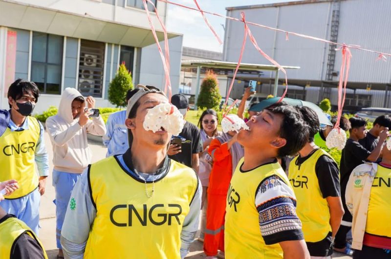 升旗仪式结束后,基地举办了趣味十足的乒乓球接力赛。由印尼籍员工组成12支队伍,大家用筷子夹乒乓球进行接力。伴随着比赛开始的哨声,大家迅速进入状态,紧密配合完成比赛,赛场上充满了欢笑与喝彩声。