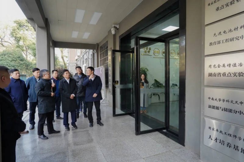 在中南大学党委常委、副校长黎志宏的陪同下,邓伟明董事长一行先后来到中南大学理学楼实验室、粉末冶金研究院、科技园,考察了中南大学在新能源金属资源提取及二次循环等方面的科研情况,对中南大学在新材料领域的科技创新、成果转化、人才培养及发展模式等方面进行了深入了解。在随后举行的座谈会上,双方就未来的产学研用合作展开进一步探讨。