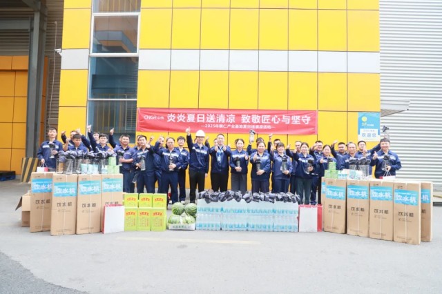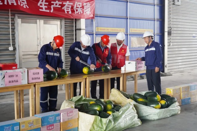 七月骄阳似火,面对“战高温、保生产”的考验,钦州产业基地总经理焦华等班子成员带领党员先锋队和志愿者服务队,为奋战在一线的员工们送上清甜西瓜、解暑饮品及防暑物资,切实将"为员工办实事"的责任担当落到实处。