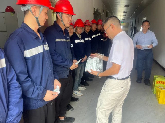 7月25日,研究总院行政院院长唐琦军、冶金化工研究院院长任兴庭、镍系研究院院长袁国和等班子成员代表公司,带着防暑降温物资与殷切关怀,深入各系产品研发车间慰问团队,亲手将凉茶、三伏贴、西瓜、冰棍等防暑物资送到员工手中,反复叮嘱大家科学防暑降温、注重劳逸结合,时刻将安全生产放在首位,确保以最佳状态投入科研生产工作。
