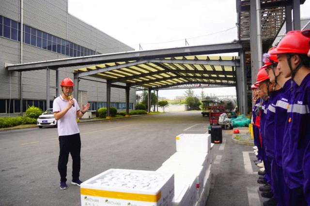 与此同时,宁乡产业基地的清凉关怀同样“热烈”。自气温攀升以来,宁乡产业基地持续为一线员工配送绿豆沙等饮品。基地总经理董本钢等领导深入车间慰问,关切询问职工高温下的生产生活。基地EHS部还现场分享了“夏季中暑预防与急救”的知识,强化安全生产培训。