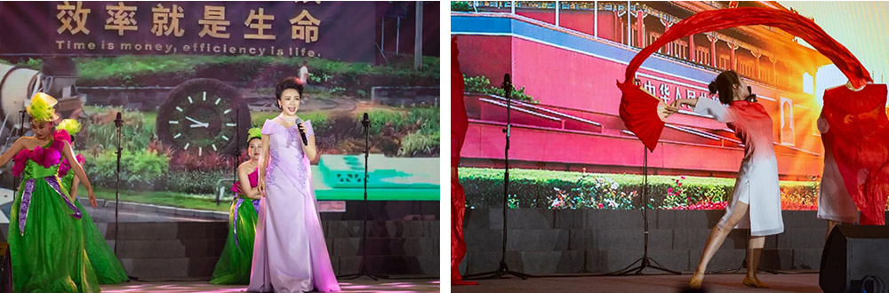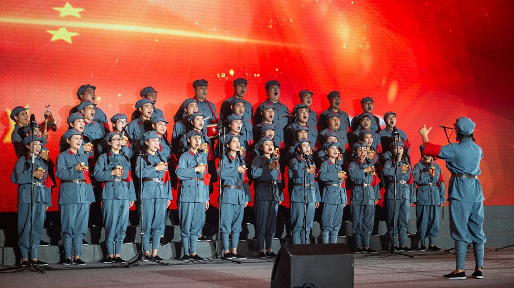 在主持人的宣布下,合唱比赛正式开始。来自各事业部、各产业基地的8支队伍相继登台,他们或穿着光彩照人、颜色各异的演出服,或穿着整齐庄严、意义非凡的红军服,伴随着音乐老师的指挥,用嘹亮、深情的歌声,回顾和纪念中国共产党的百年奋斗史。