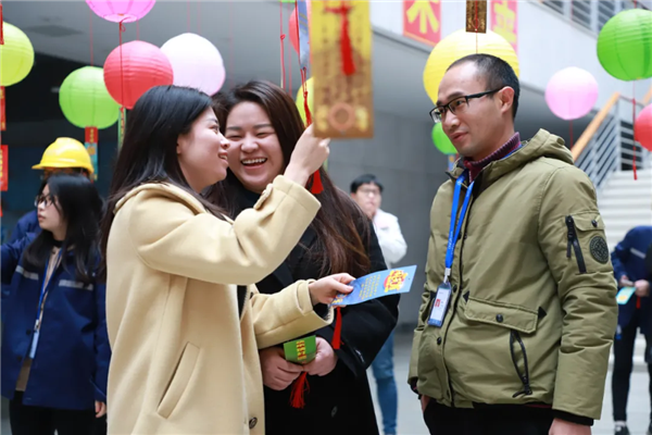 现场精心布置的200条谜语,既有古诗词、二十四节气、历史人物等内容,又有公司企业文化的内容,趣味性与知识性兼具。在猜谜现场,一张张写满灯谜的彩条吸引着来自各部门、车间的员工们,大家竞相挑选着灯谜,有的看着灯谜紧皱眉头绞尽脑汁,有的喜笑颜开。