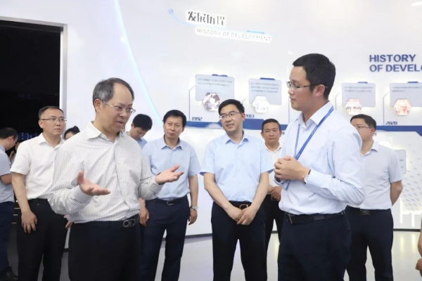 随后,陶长海一行前往智能制造三元八车间参观,了解了车间智能化和数字化作业现场,并通过大数据平台实时查看了“人、机、料、法、环”的运转情况、suncitygroup太阳新城自主研发的自动化生产设备情况,鸟瞰了suncitygroup太阳新城在贵州铜仁总部的原料厂区、材料厂区、环保厂区、高冰镍项目的区域分布情况。