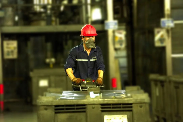 在四钴二车间,溶解员刘均芝一丝不苟地绑好吊绳,将原材料精准投放到位。溶解岗位要求穿戴全套护具,这进一步增加了刘均芝的体感温度,但他没有丝毫懈怠,在平凡的岗位上发挥出不凡的能量,用匠心书写着高温下的感动。他们车间的口号是:坚守岗位,不惧高温,保障安全生产。