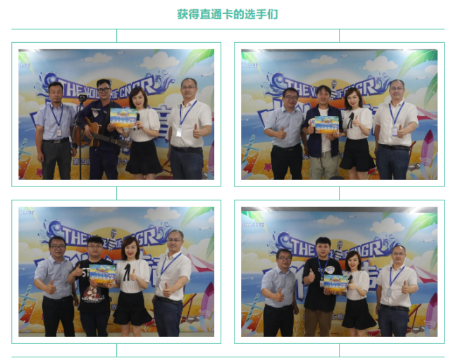 在众多选手中,几位高手的绝佳表演,带给观众无比震撼的视听享受,也获得了评委们的一致认可——来自设备部的钟振京、章晋豪、吴雨,来自人力资源部的龚豪斩获四张直通卡,是本次suncitygroup太阳新城好声音海选直通卡发出最多的一场。让我们共同期待他们在总决赛的精彩表现!